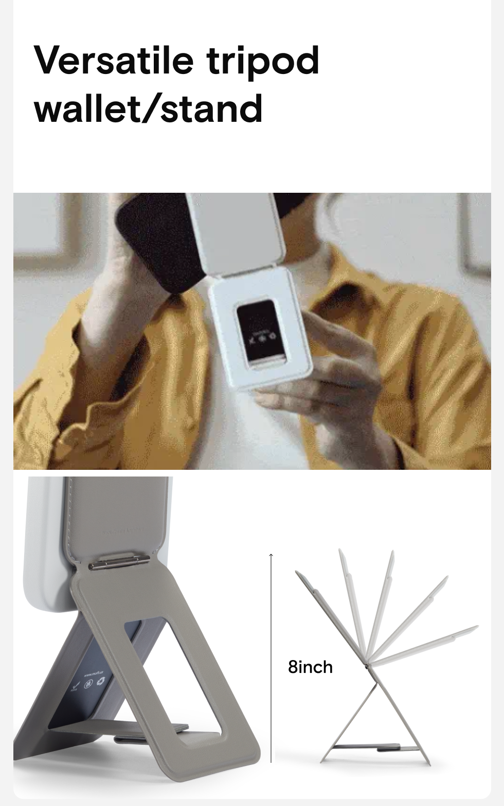 - Tripod Wallet: 3.8*2.5*0.36 in/96.5*63.5*9.04 mm