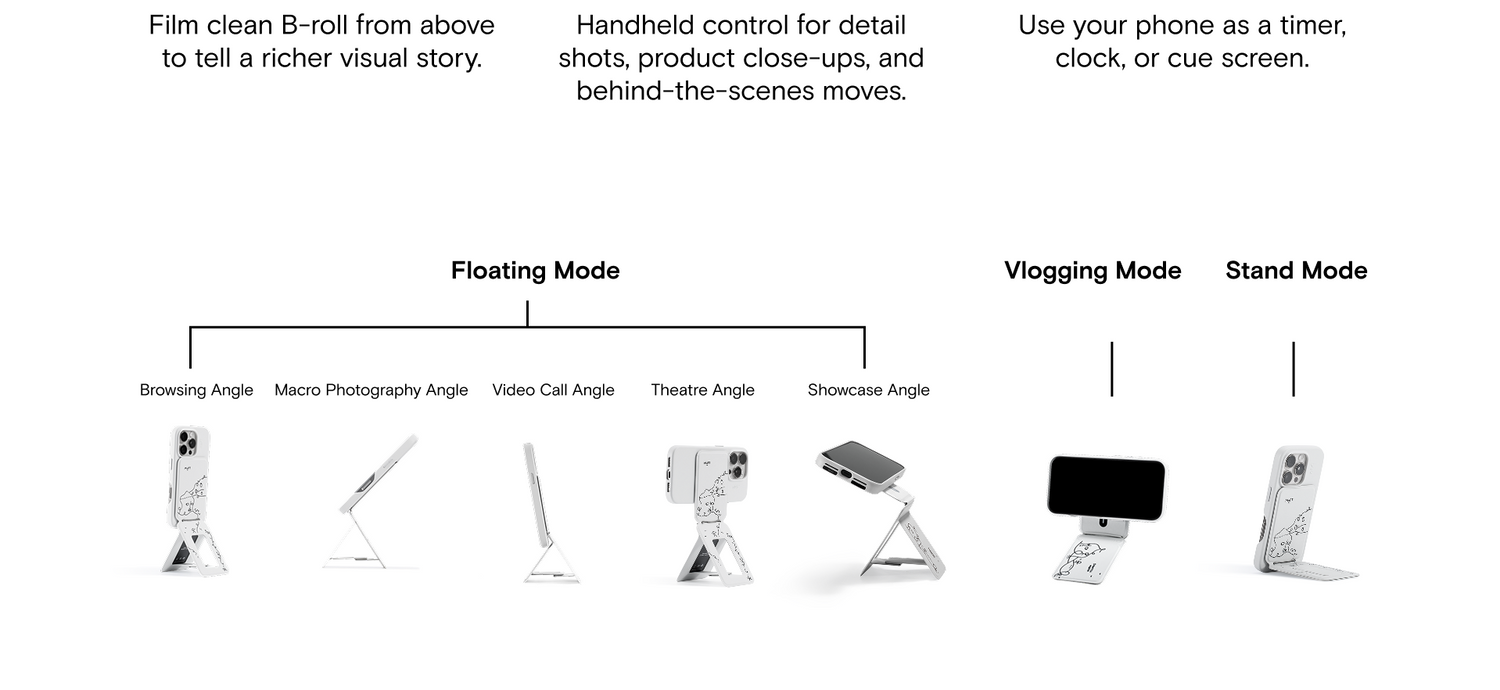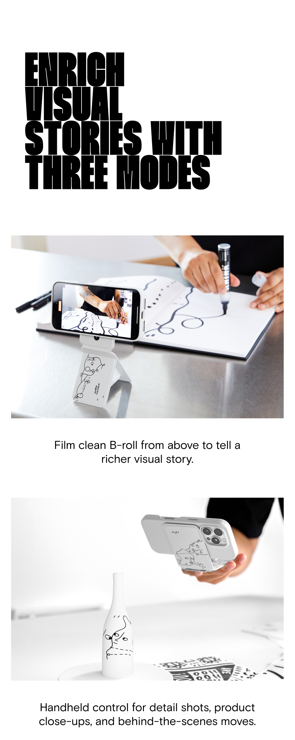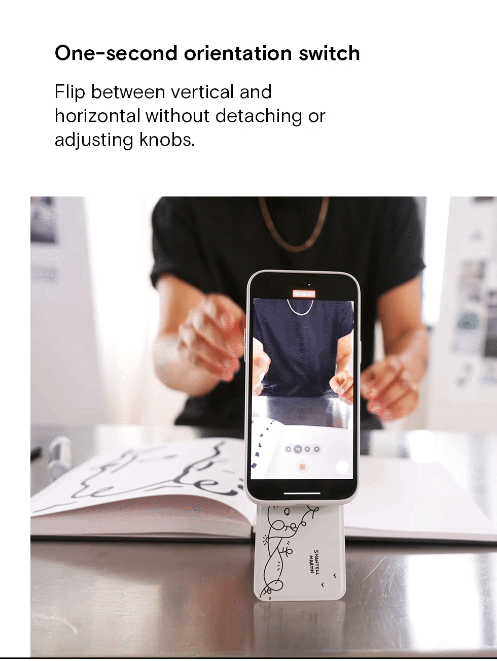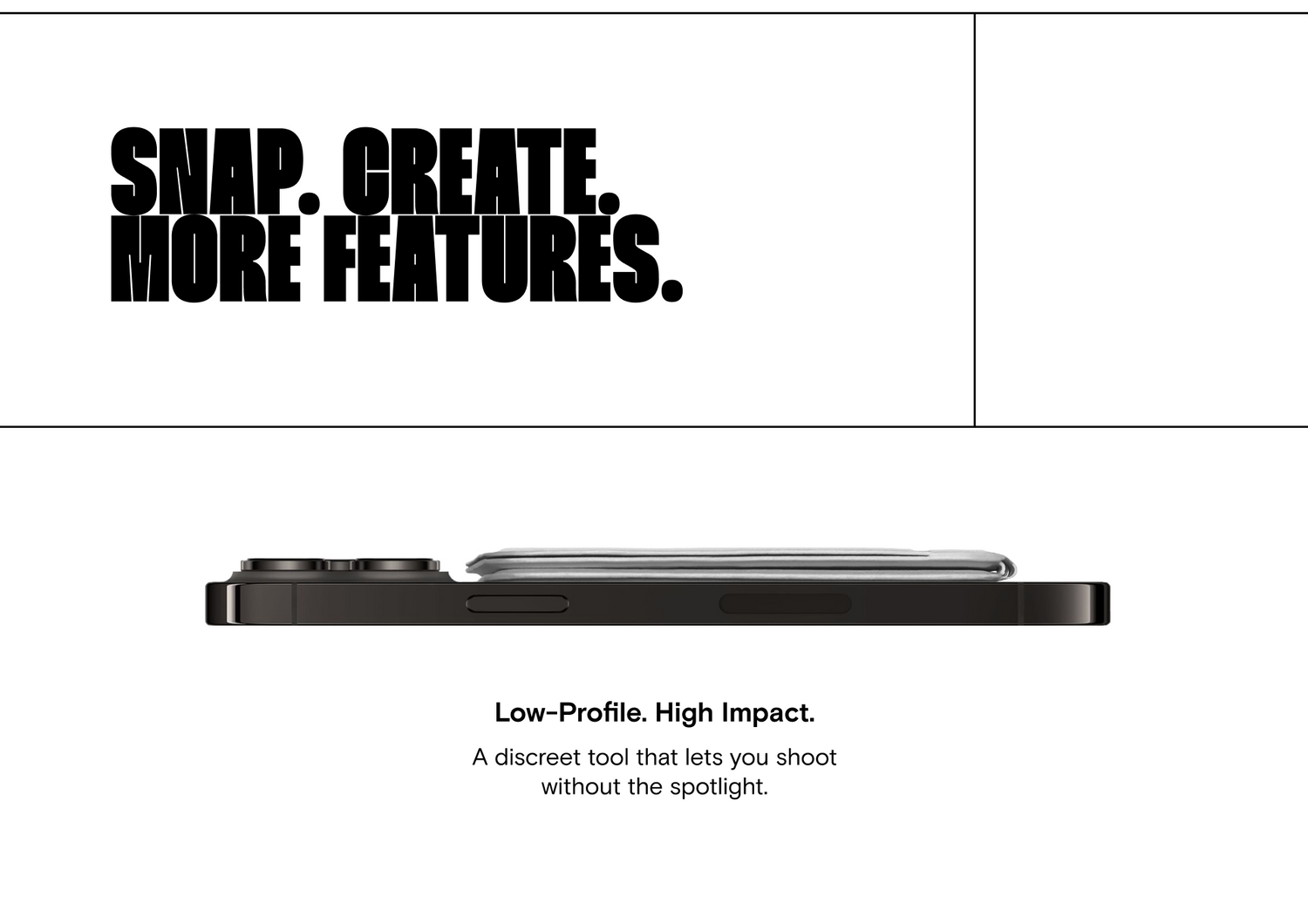 Snap off the Tripod Stand to switch to other accessories, snap back on the Tripod Stand and stack on an accessory like our Snap Stand & Wallet to carry together effortlessly (For the wallet stacks on the tripod, check out the last gif on the main image section).