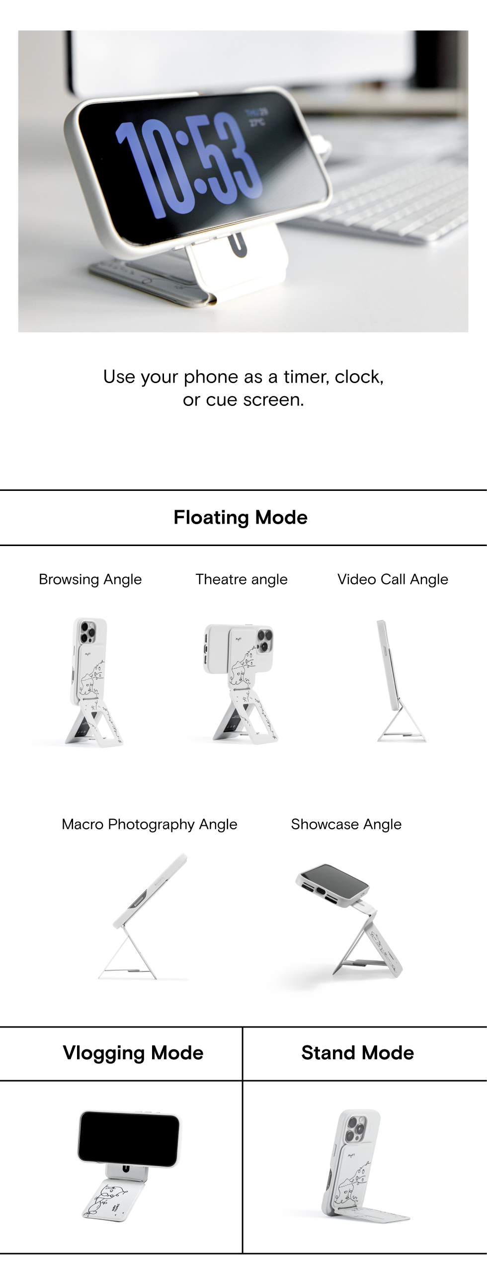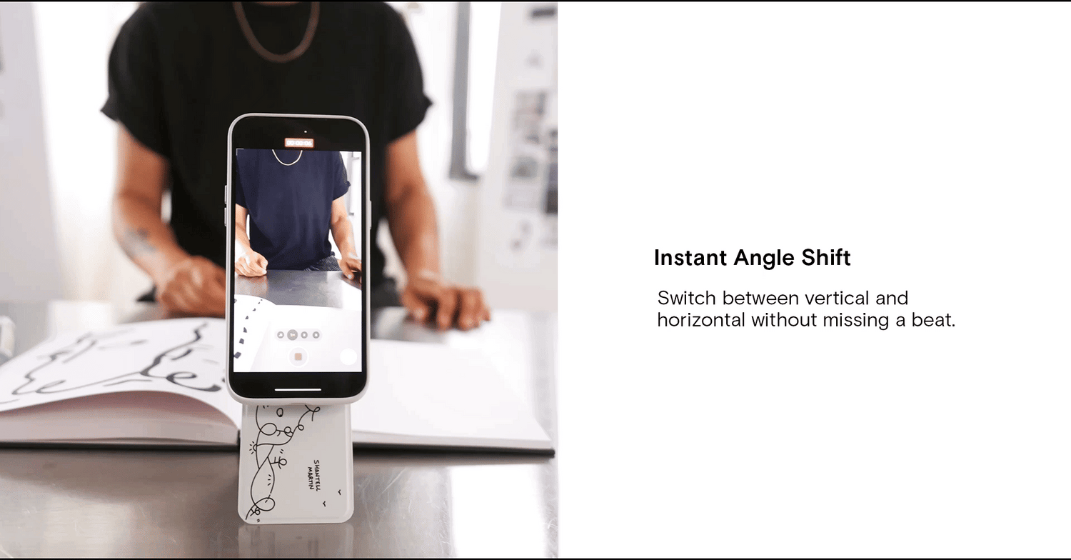 Certainly, you can position the Snap Battery Pack directly between the phone tripod and your phone, like a sandwich, thanks to the dual-sided magnetic design of the battery pack. However, it's best to avoid this setup when using the Video Call Angle, as it can cause the phone to tilt due to an imbalance of force.