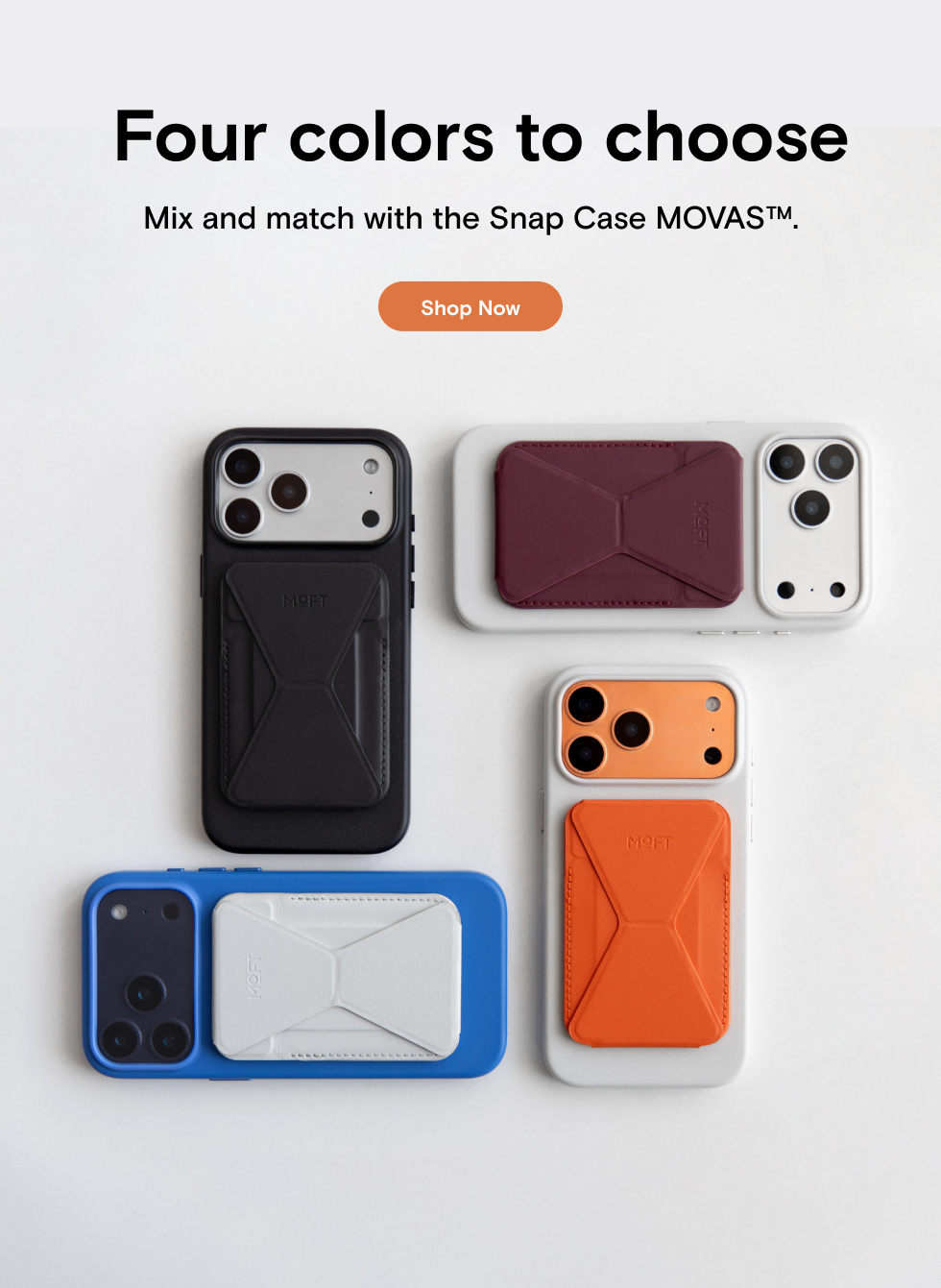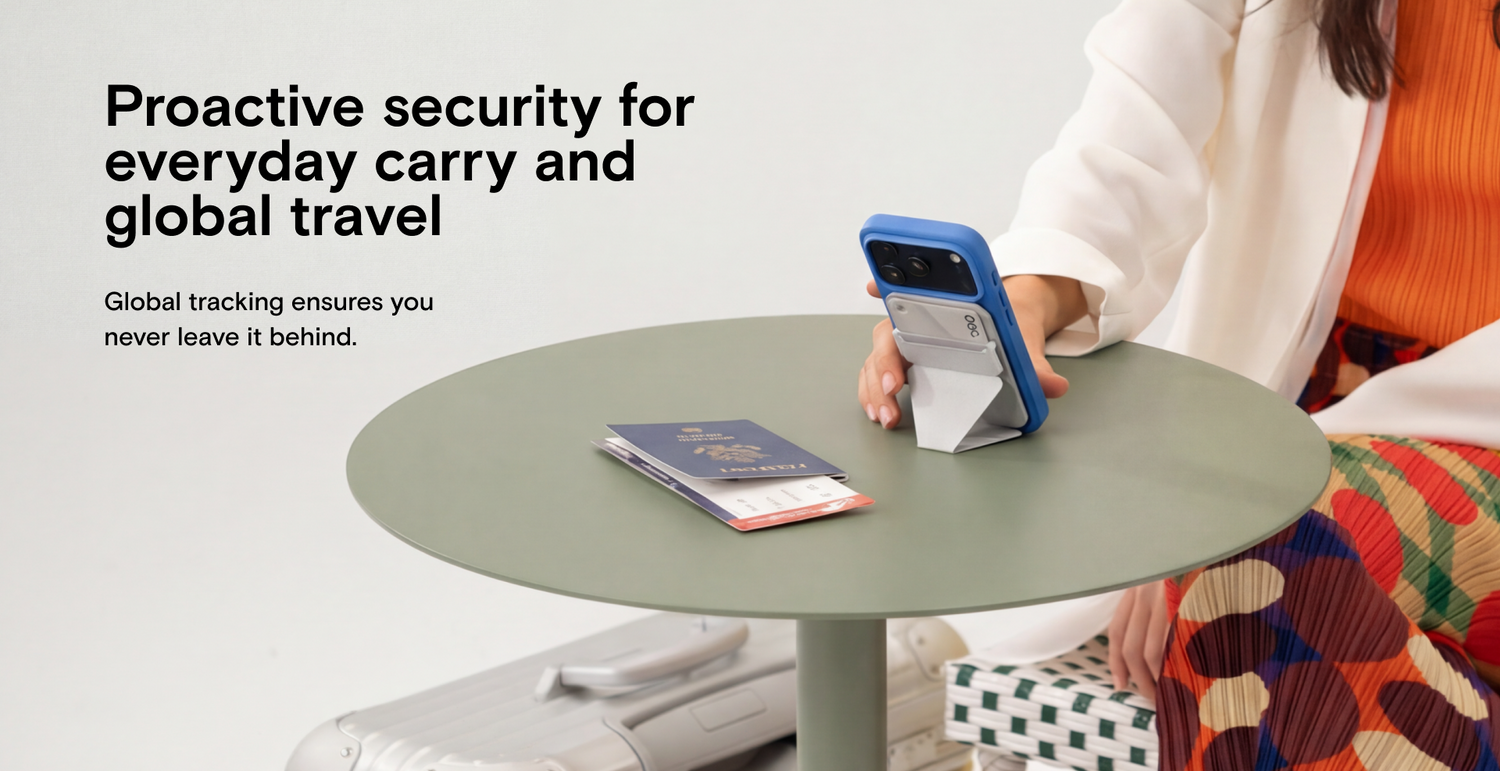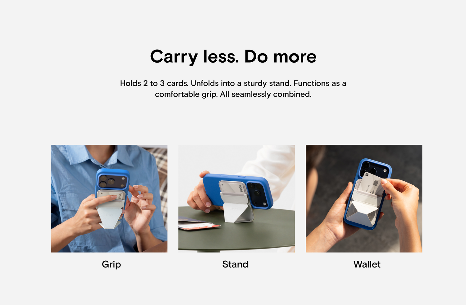 The Moft Trackable Snap-on Phone Stand & Wallet is a slim MagSafe wallet that can hold up to three cards. The back of it folds down to reveal the cards inside and acts as an impromptu stand.