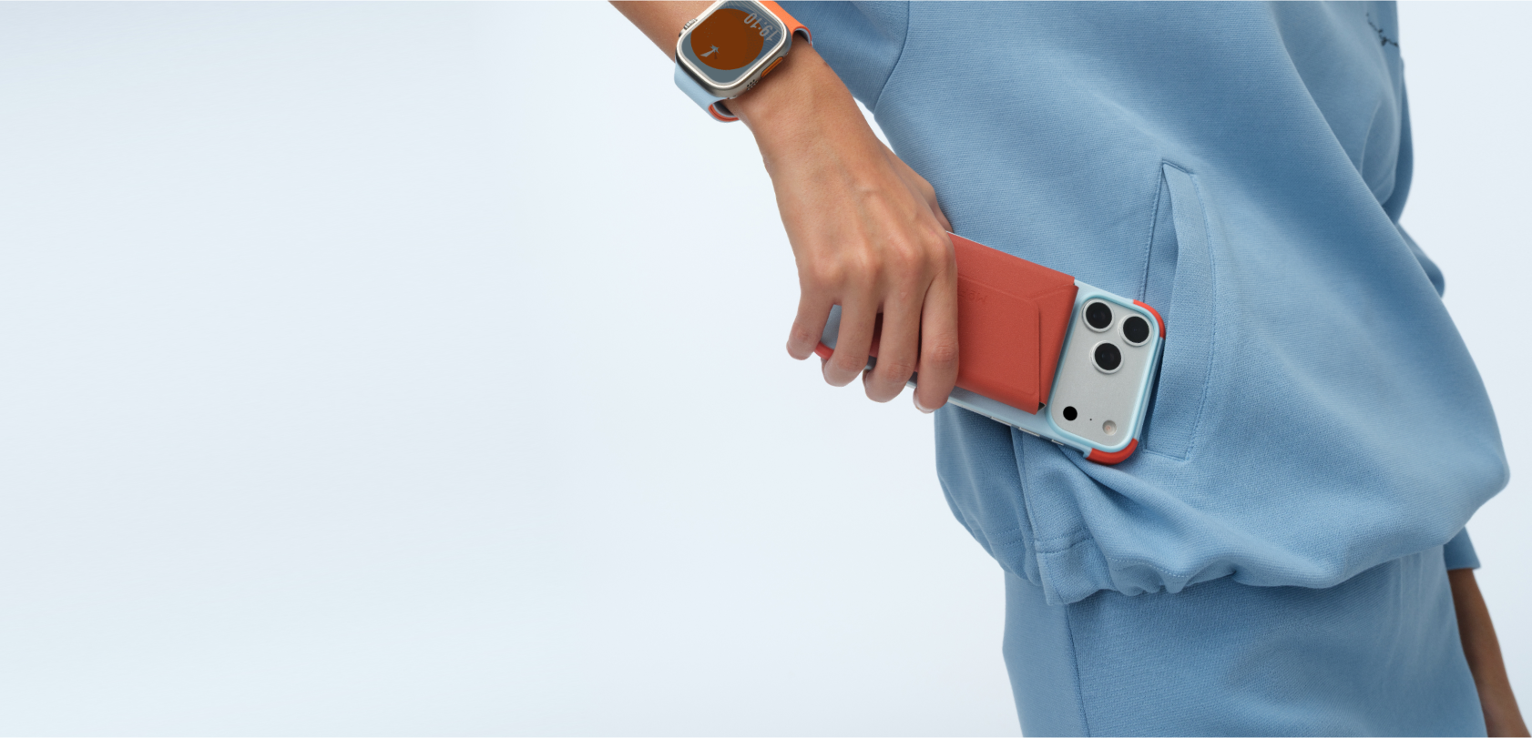 From lightweight cases to soft watch bands, bold splashes of color lift your mood. Snap on the compact, roomy wallet and you’re ready to explore the world.