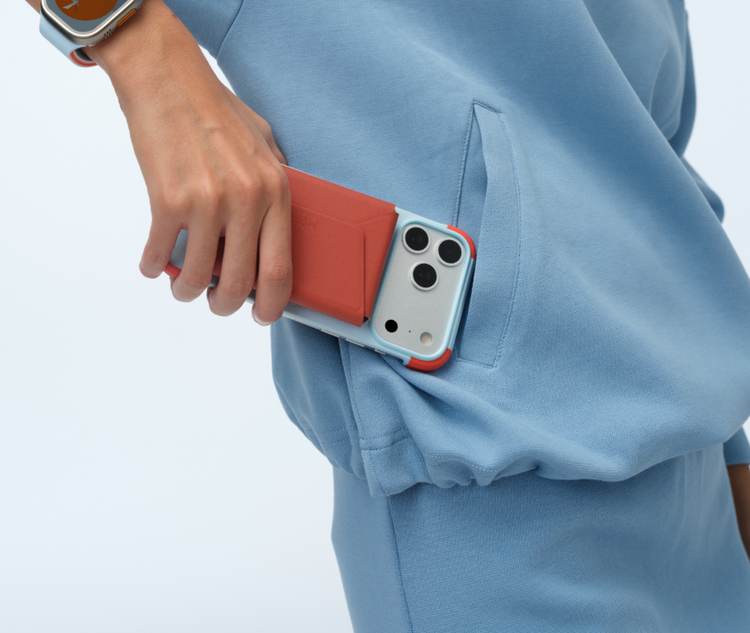 A one-piece MagSafe wallet with compartments for everyday and occasional cards, plus dedicated slots for a SIM card and ejector tool. Essentials stay organized, ready for life on the move.