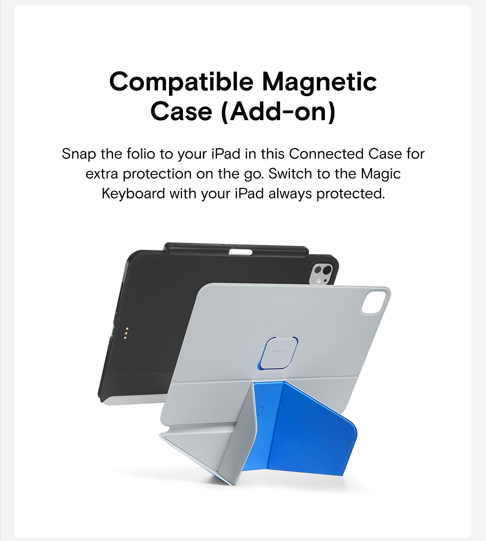 iPad Pro 11" (M4/M5), iPad Pro 13" (M4/M5), iPad Air 11" (4-5th Gen./M2/M3) & iPad Pro 11" (2-4th Gen.), iPad Air 13" (M2/M3) & iPad Pro 12.9"(4th-6th Gen.), iPad (10/11th Gen.), iPad mini (6/7th Gen.) |