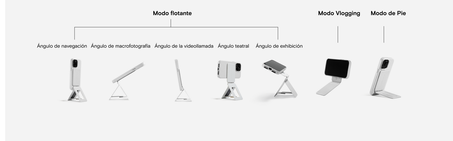 Sí, es estable. Gracias a su estructura inspirada en el origami, cuenta con una base triangular que le proporciona estabilidad, manteniéndose delgado cuando está plegado. Además, pasó la prueba MOFT Lab, soportando hasta 11 oz / 300 g (el iPhone 16 Pro Max pesa 8 oz / 227 g). Además, la bisagra del trípode soporte está fabricada en acero manganeso, lo que garantiza su solidez incluso después de abrirlo y cerrarlo 5,000 veces.