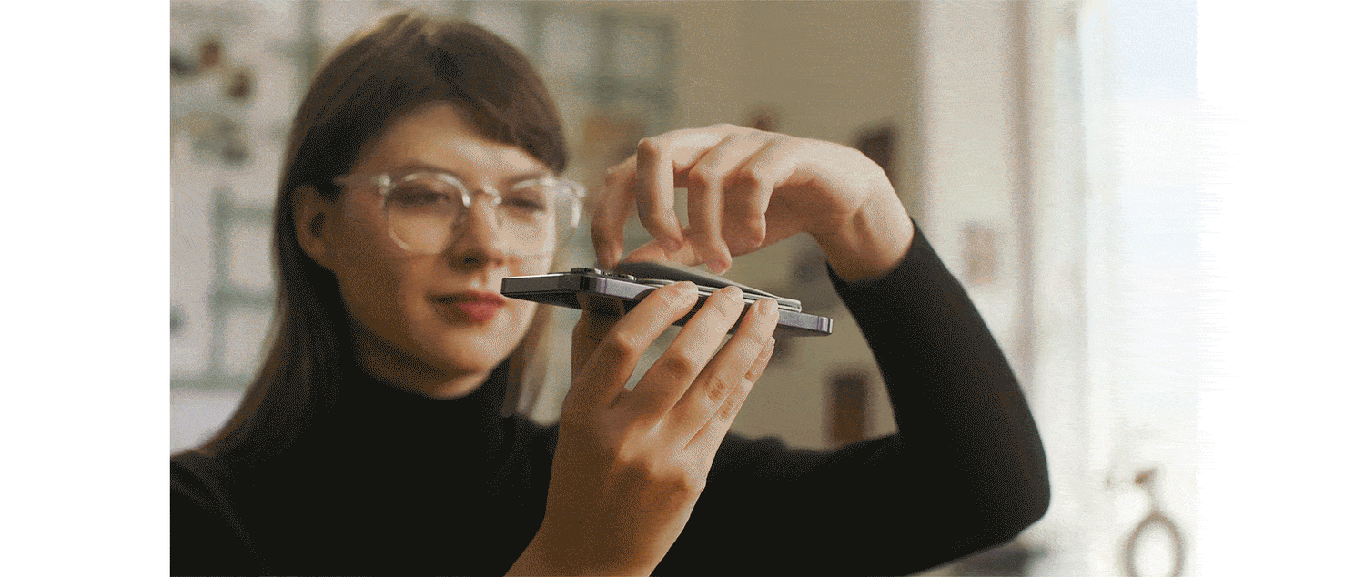 Desmonta el trípode soporte para cambiar a otros accesorios, vuelve a montar el trípode soporte y apílalo en un accesorio como nuestro Snap Stand & Wallet para llevarlos juntos sin esfuerzo (Para apilar la cartera en el trípode, echa un vistazo al último gif de la sección de la imagen principal).