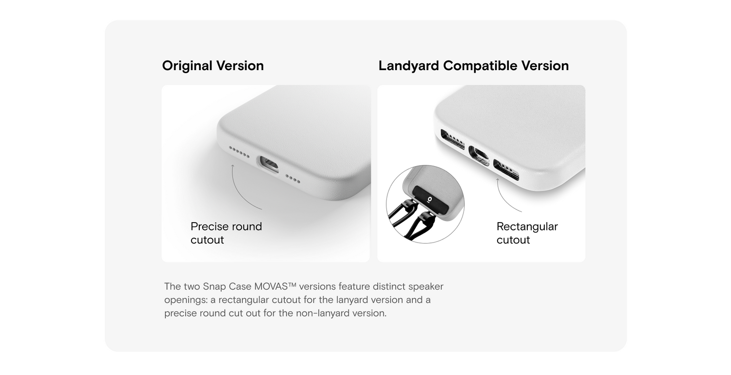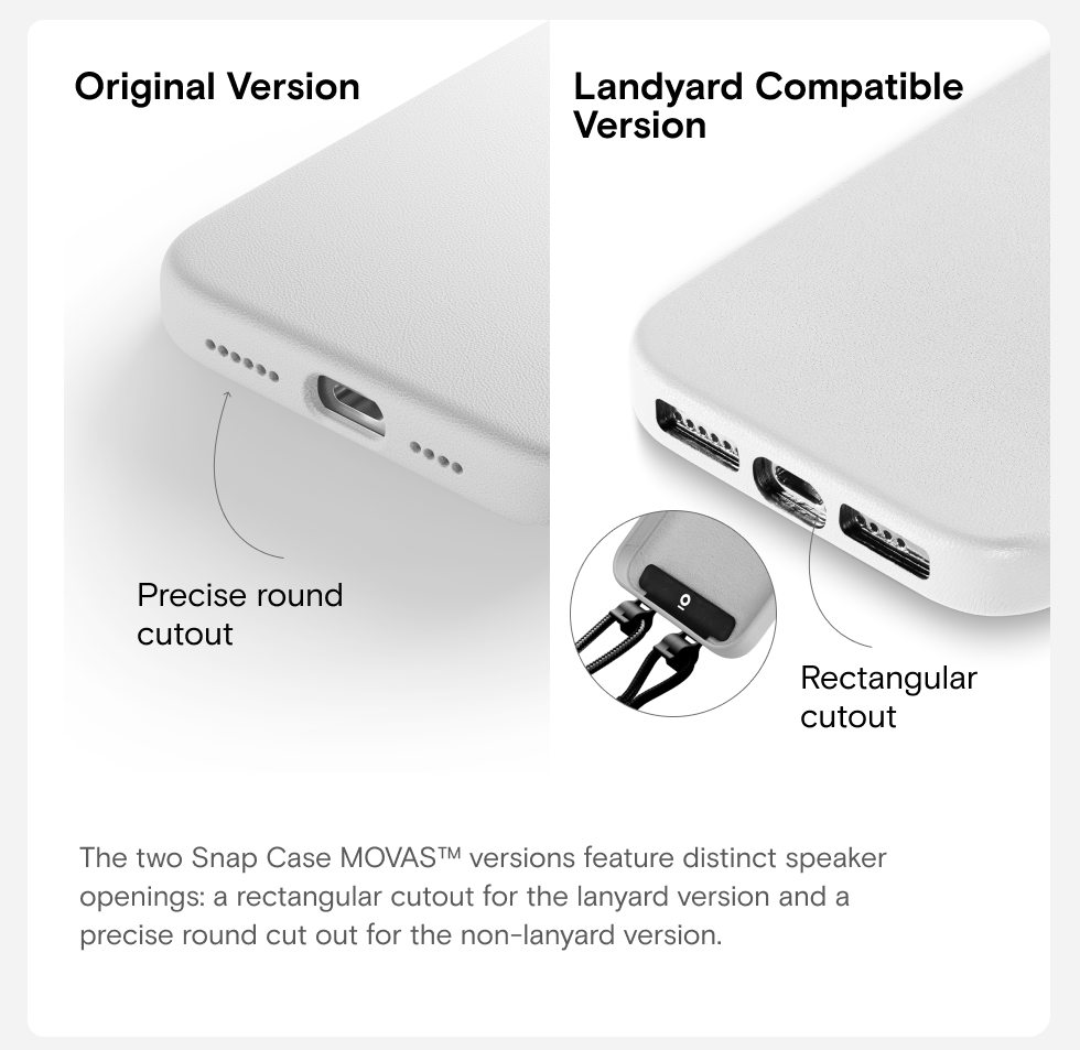 ONLY the Lanyard Compatible Version is designed with a slot for the lanyard anchor. (*Click here to check how to attach the Phone Lanyard to the MOVAS Snap Case.)