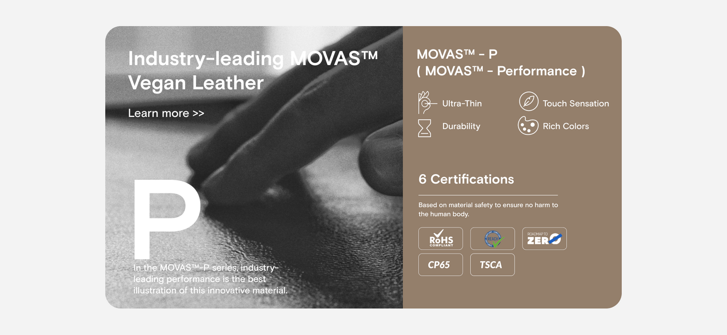 It is made with our pioneering, self-developed MOVAS™-P vegan leather, to retain its vibrant color for a long time through a unique dyeing process and materials. A quick tip: Avoid strong chemicals that might damage the leather and lead to color fading. To keep it looking sharp, use alcohol below 75% concentration and skip other chemical cleaners in your regular maintenance routine.