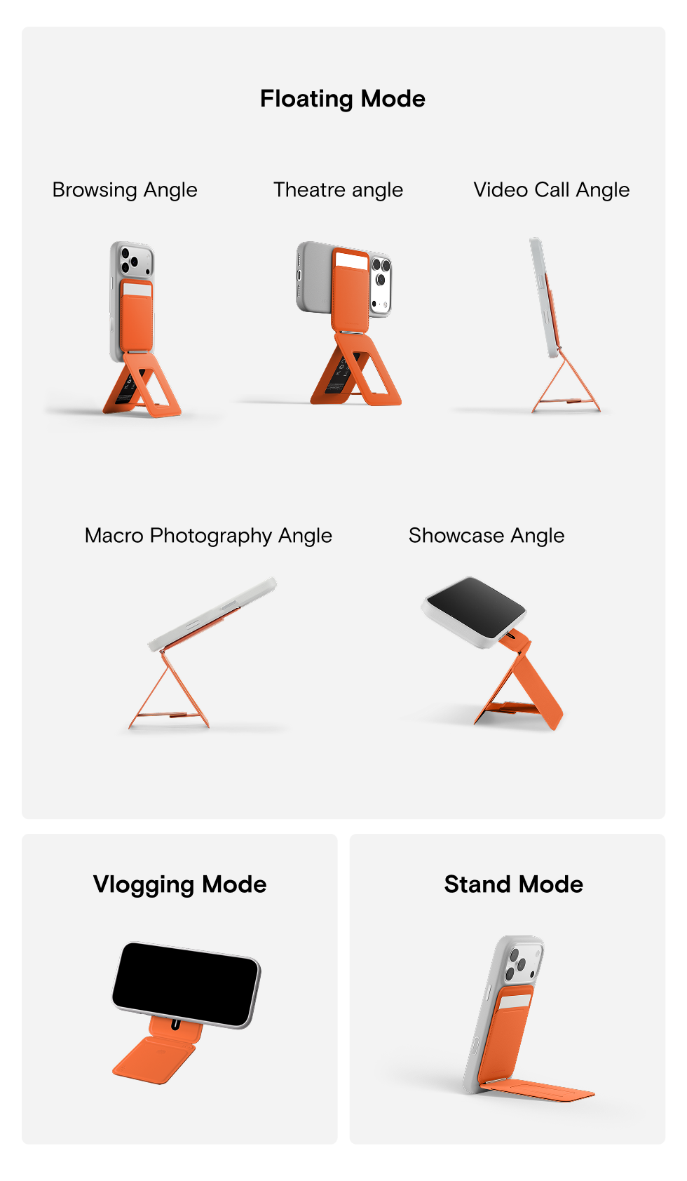 3 modes: Floating Mode, Stand Mode, and Vlogging Mode