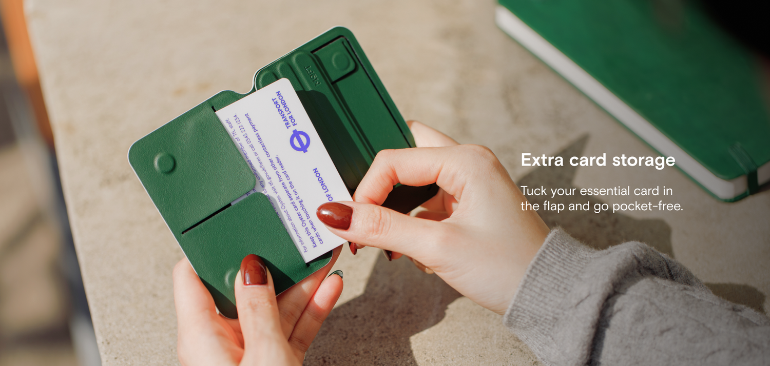 Yes, the Snap Flow can store up to two cards. The top flap on the left side hold the card(s) in place.