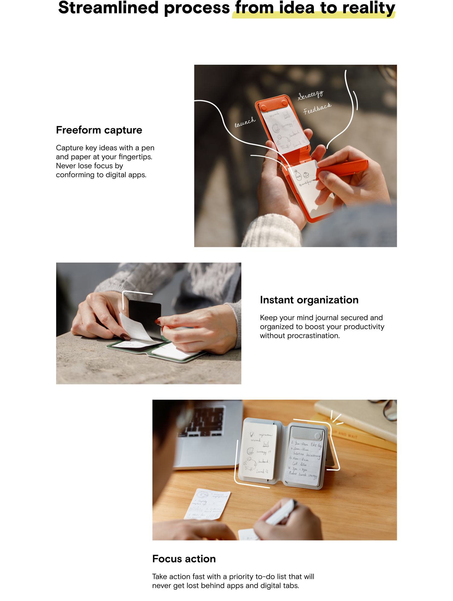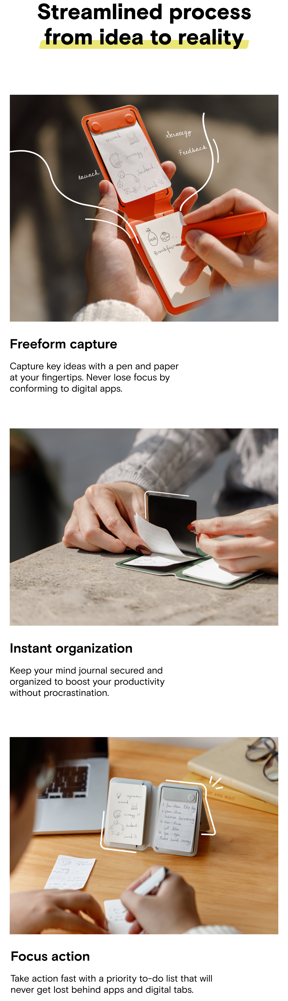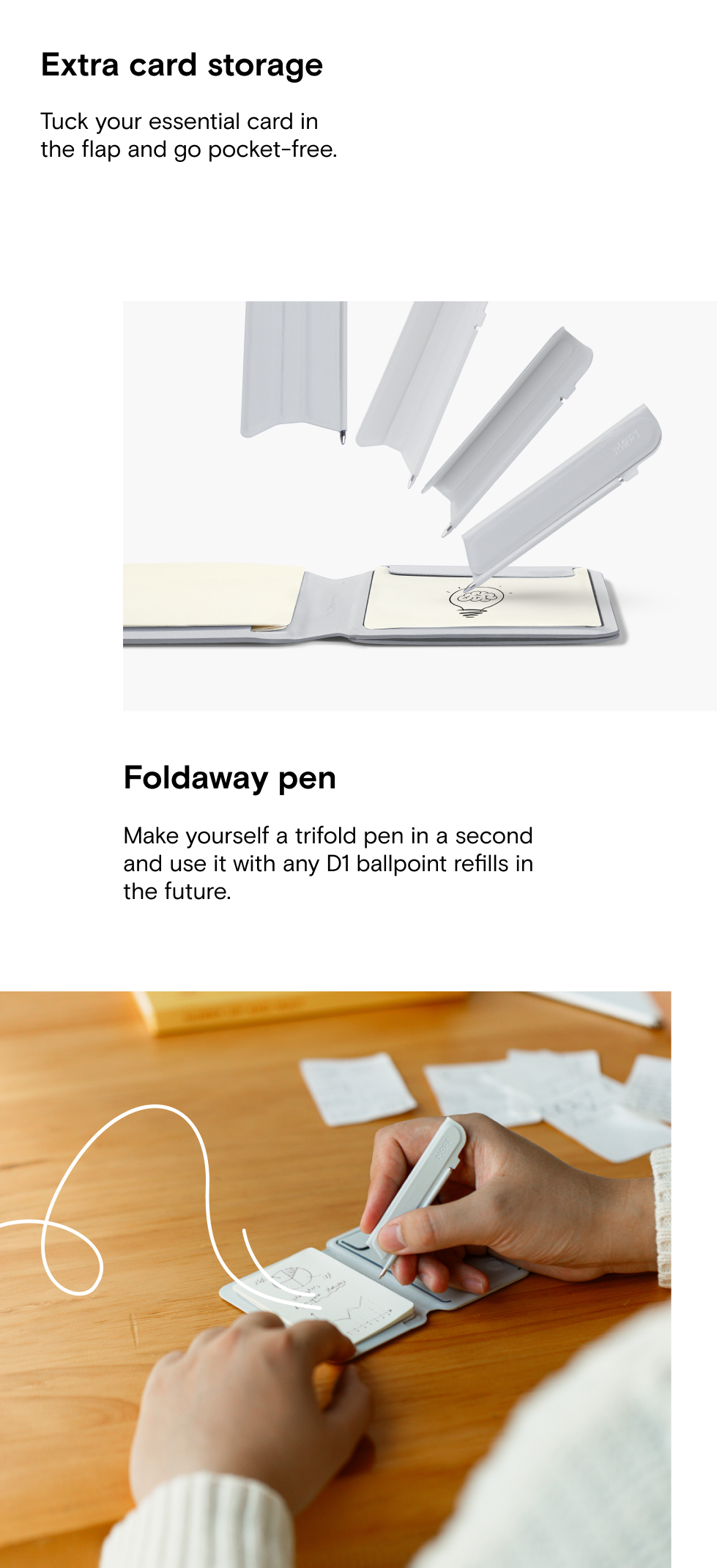 Other than the Notepad Sets, you can also use it with any 3*2 in notepads or A8 sticky notes. For your information, the notepads that come along with the Snap Flow are smooth Kokuyo paper.