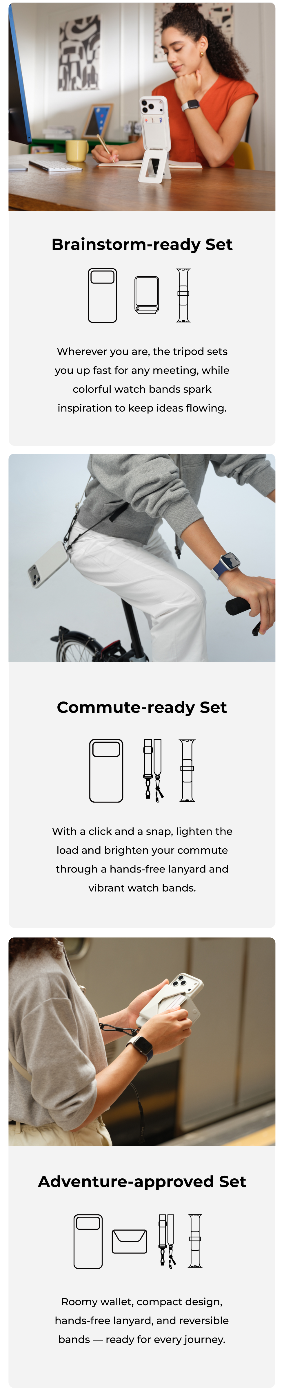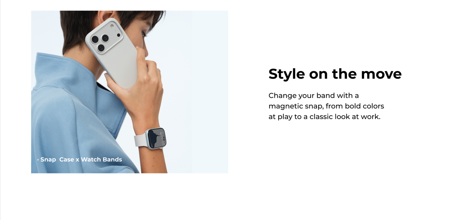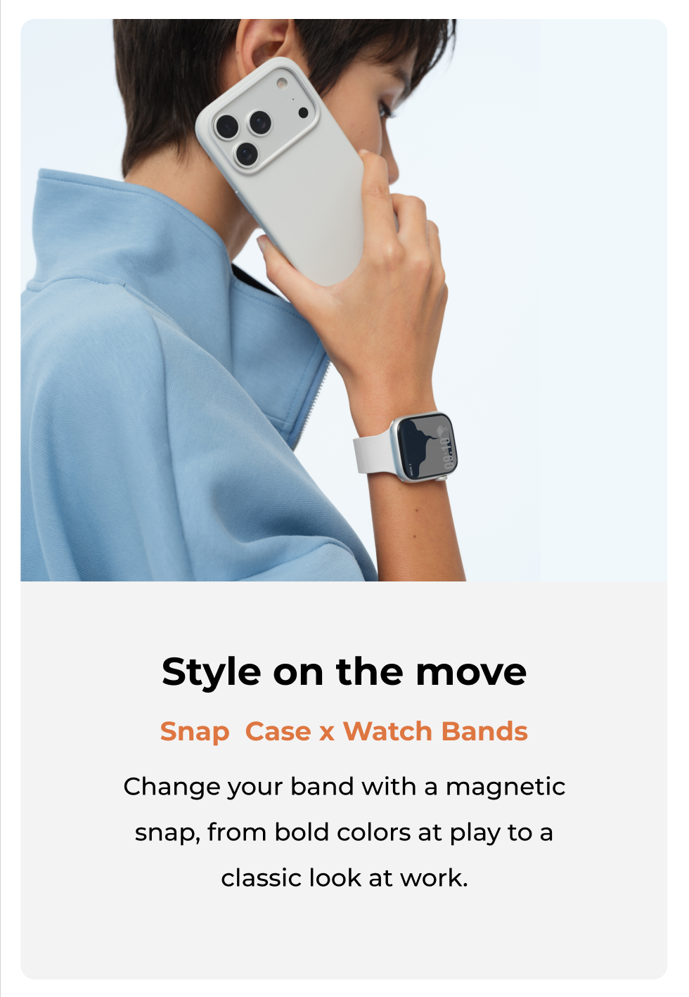 Snap Duo Watch Bands employs non-toxic, food-grade silicone, so it's suitable for long-term wear. Additionally, it's recommended taking the watch bands off to wipe the sweat in time, because it's designed with no indented grooves for a more minimalist look that fits in everyday life, from job, to social life, to fitness.